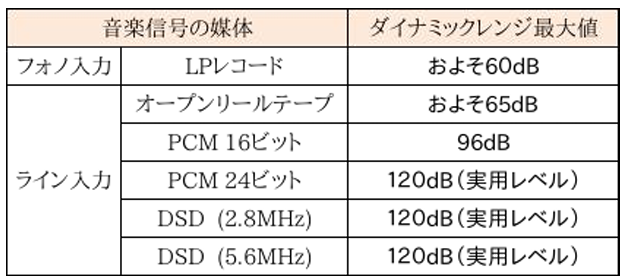 下表は、各媒体のダイナミックレンジの最大値を示したものです。